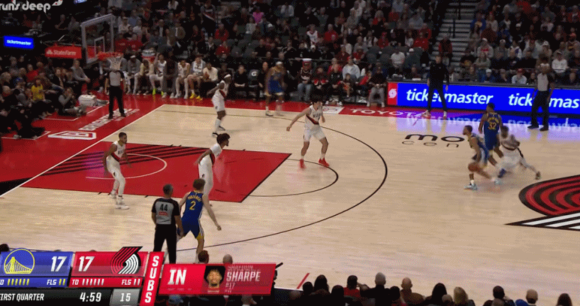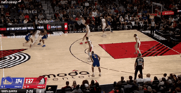 背靠背作戰的勇士疲態盡顯,全隊僅37歲的庫里一人在線苦苦支撐,開拓者這邊夏普、卡馬拉、阿夫迪亞、格蘭特個個奮勇爭先,打得生龍活虎,不給勇士任何機會。